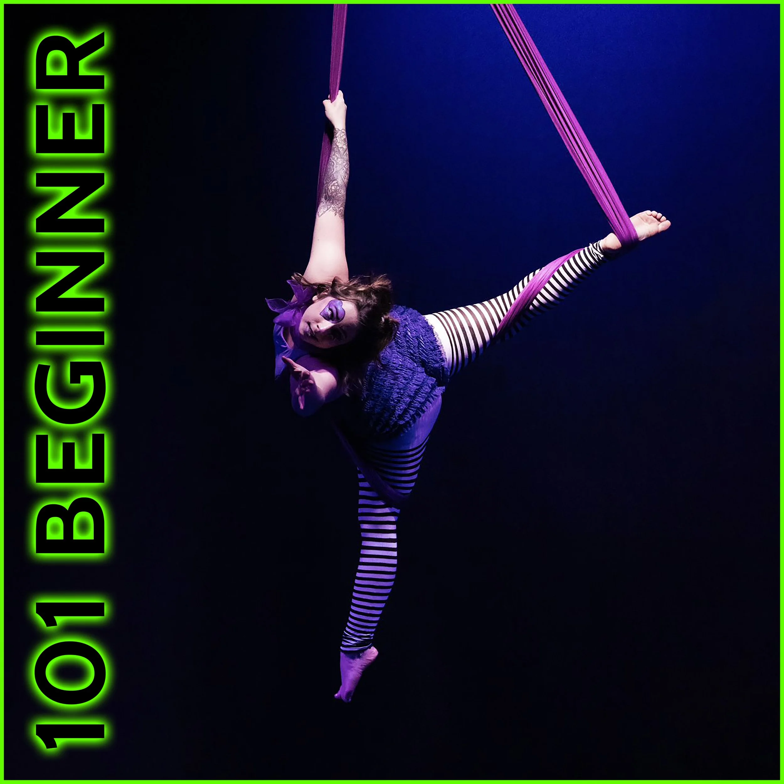 This intro-level class is a great place to start your aerial adventure! This class focuses just on the rudimentary manuevers, positions and movement elements used in aerial dance, using soft, supportive aerial sling fabric to build your strength, stamina and flexibility! There’s little to no sequencing or choreography- just foundation moves! This class is beginner-friendly, no experience necessary!